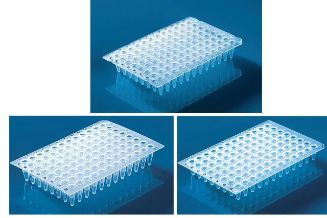 PCR plates consisting of 96 PCR tubes (0.2 mL), with alphanumeric coding. Ultra-thin wall design facilitates rapid and steady heat transfer. Smooth interior tube surface minimizes binding of enzymes and nucleic acids. Raised rims of wells protect against cross-contamination and provide tight seal particularly in combination with BRAND´s new sealing mats. Furthermore these sealing mats can be easily pierced with standard pipette tips. The PCR-plates can also be sealed with traditional self-adhesive sealing films. Skirted plates are available with bar code on request.